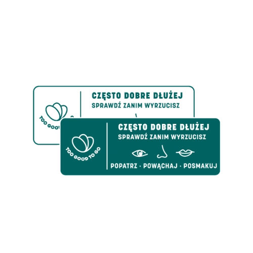 Etykieta Popatrz-Powąchaj-Posmakuj firmy Too Good To Go pomaga przypomnieć ludziom, że produkt po upływie daty przydatności może nadal nadawać się do spożycia. Możesz zaufać swoim zmysłom po prostu popatrz, powąchaj i posmakuj, zanim zmarnujesz.