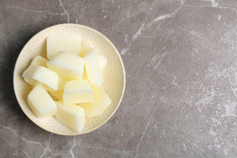 1. É melhor congelar o leite num recipiente à parte do que na embalagem, pois o mesmo expande quando congelado. Assim, começa por verter o leite para cuvetes de gelo ou formas de queques, deixando algum espaço no topo.