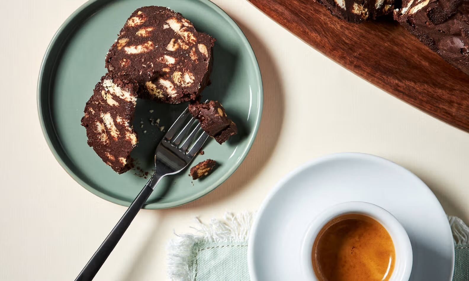 Não te deixes enganar – embora a aparência desta receita lembre um salame, o sabor é uma verdadeira tentação! Uma mistura deliciosa de biscoitos, manteiga, chocolate e frutos secos – uma forma fantástica de aproveitar pães e doces que sobraram das festas.