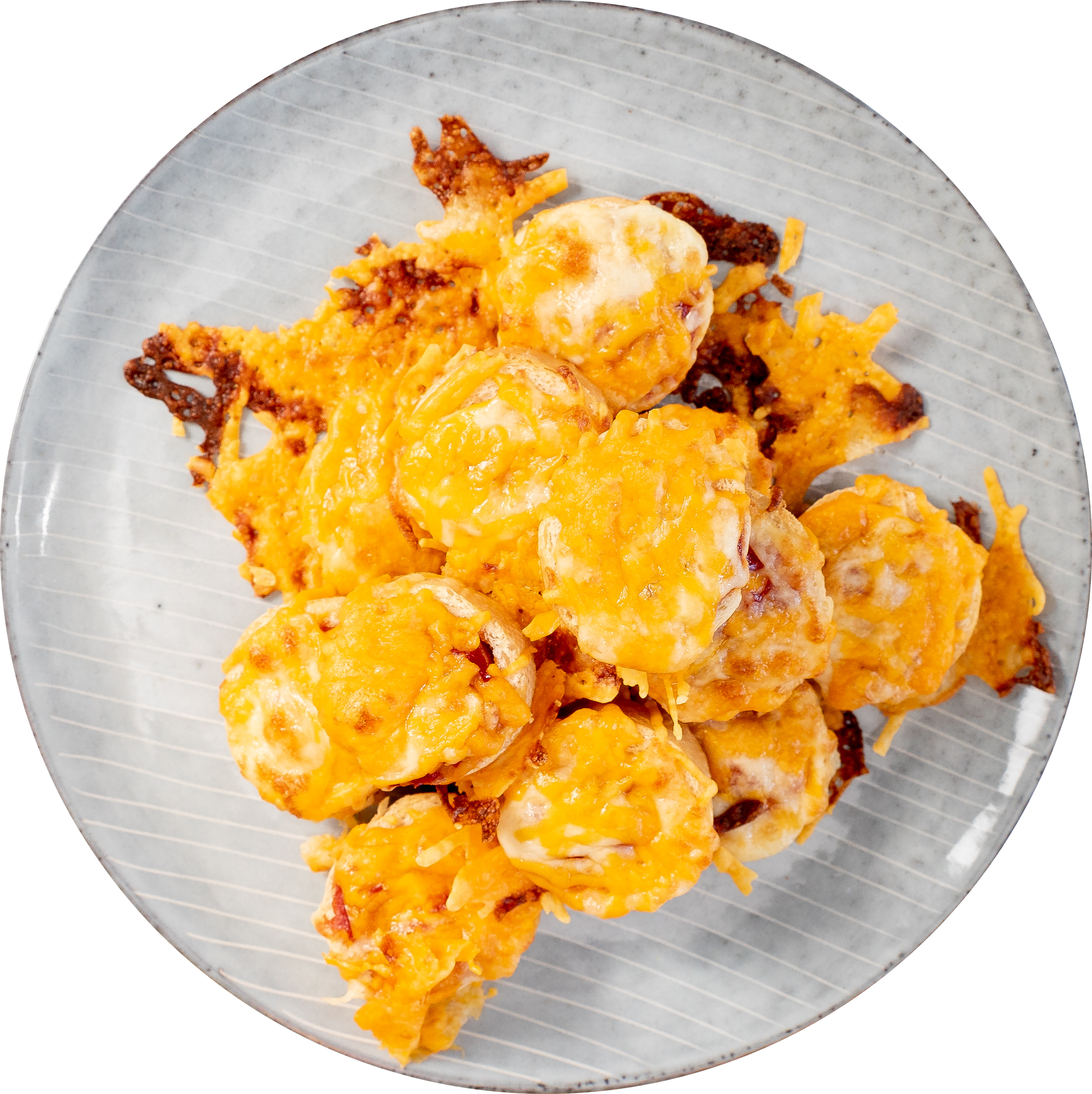 - Bag dem i en forvarmet ovn ved 180 grader i ca. 5-10 minutter, eller indtil brødet er lidt brunt og osten er smeltet.