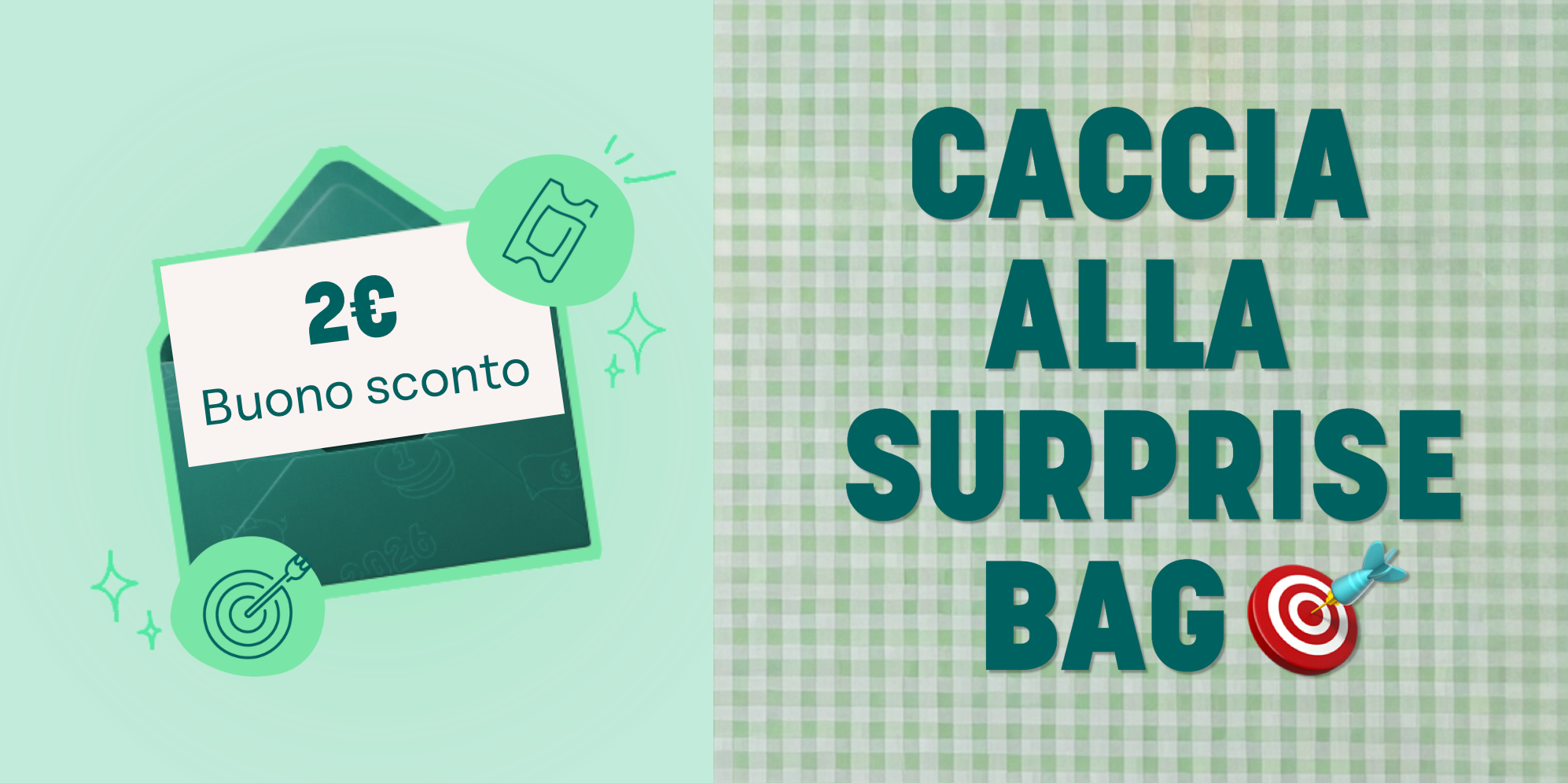 Nel corso del periodo dell'iniziativa, gli utenti potranno partecipare salvando 2 (due) Surprise Bag contrassegnate dall'emoji 🎯 nel nome dello store, in due ordini distinti, secondo le modalità comunicate all'interno dell'app. Al completamento dei requisiti previsti dall'iniziativa, e dopo chiara convalida da Too Good To Go, l'utente avrà diritto a ricevere un buono promozionale del valore di 2,00 € («Buono»), fino ad esaurimento scorte.