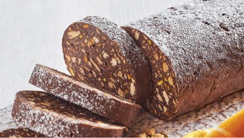 Não se deixe enganar, a semelhança desta receita com o tão conhecido salame é apenas no formato, pois no paladar é uma mistura de biscoitos/bolachas,manteiga, chocolate e avelãs – uma forma deliciosa de aproveitar ao máximo o pão e os doces de Natal que não foram degustados.