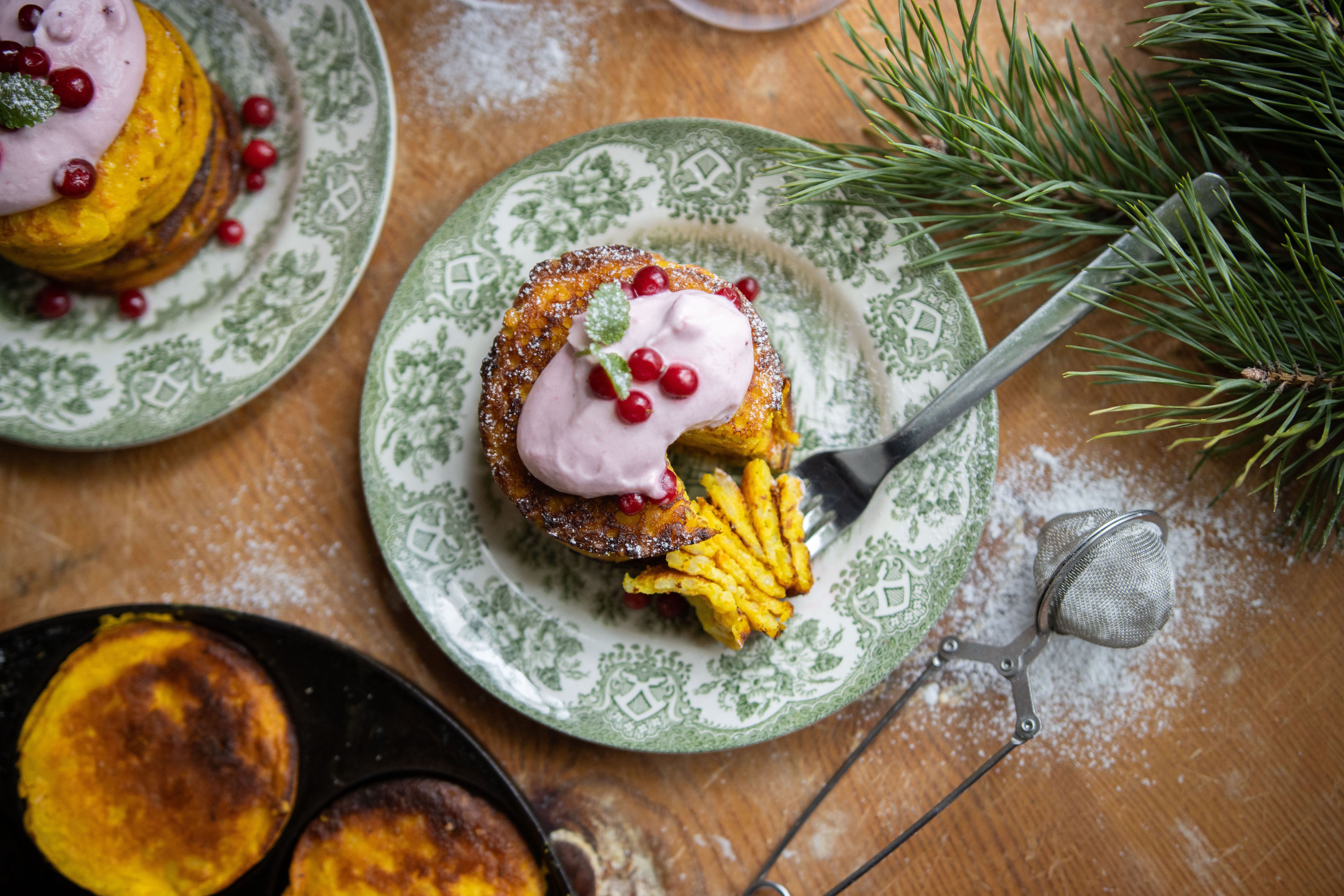 SAFFRANSPLÄTTAR PÅ RISGRYNSGRÖT MED LINGONGRÄDDE